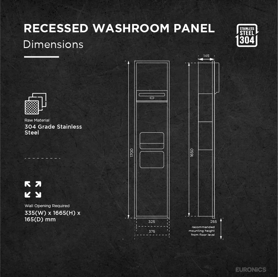 Wall Opening Required | 335mm (W) x 1665mm (H) x 165mm (D) |